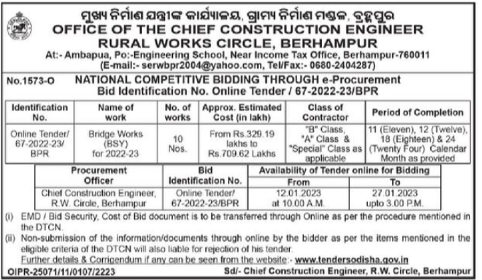Bid Identification No. Online Tender / 67-2022-23/BPR