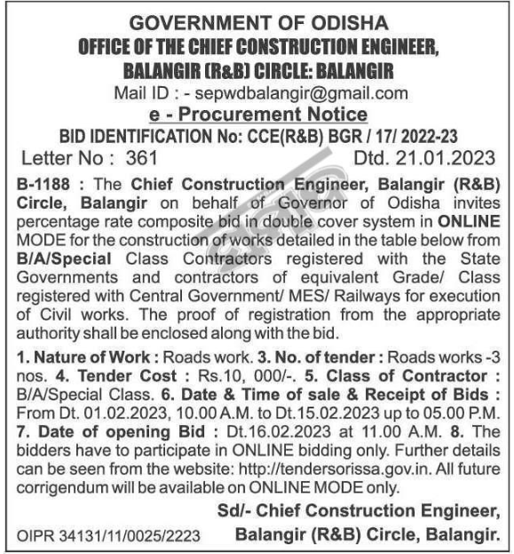 Tender for Nature of Work: Roads work. 3. No. of tender: Roads works -3