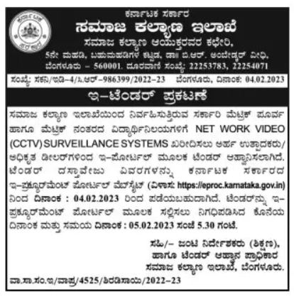 Tender for NET WORK VIDEO for Government Pre-Matric and Post-Matric Hostels managed by Social Welfare Department