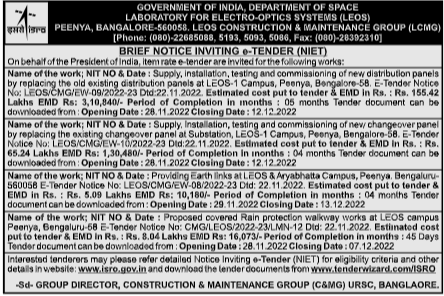 Supply, Installation, testing and commissioning of new changeover panel by replacing the existing changeover panel at Substation, LEOS-1 Campus, Peenya, Bengalore-58.