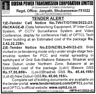 Tender for No.ED/NZ/BLS-05/22-23: Bids Invited in (e-tendering mode only) under single stage two- envelop system for PCC and metal spreading in switchyard of Grid Sub-Stations Balasore, Bhadrak and New Duburi under Northern Zone
