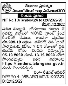 Tender for No. of Works: 3. Estimated Expenditure under MOMB Grant in Jogulamba Gadwala & Vanaparthi Districts: Recalling Works.