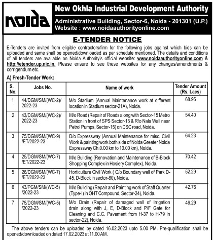 Tender for noida New Okhla Industrial Development Authority