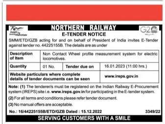 Tender for Non Contact Wheel profile measurement system for electric locomotives.