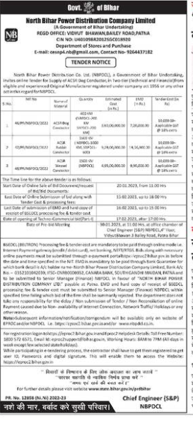 Tender for North Bihar Power Distribution Company Limited (A Government of Bihar Undertaking REGD OFFICE: VIDVUT BHAWAN BAILEY ROAD PATNA CIN NO: U401098R201256C018920 Department of Stores and Purchase North Bar Power Denniston Co. Ltd. (NBFOCL), a Government of Bihar Undersing inutes online Tender for Supply of ACS Deg Conducted in Two-tier Cechnical and incom act in this regard for POL