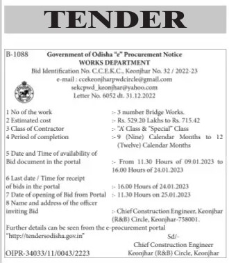 Tender for number Bridge Works.