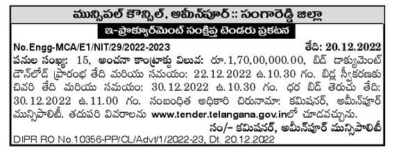 Tender for Number of Works: 15 in Municipal Council, Amin Ppur :: Sangareddy District