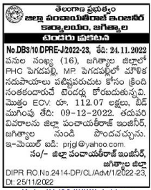 Tender for Number of Works (16), Jagitial District PHC Pegadapally, MP. Elemental in Pegdapalli
