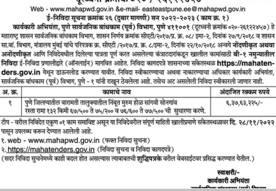 form B-1 through e-tendering system (online) for the following works from contractors registered or unregistered
