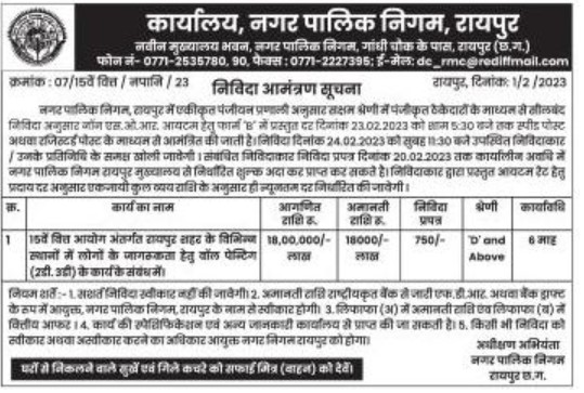 the form of check draft in the name of Commissioner, Municipal Corporation, Raipur. 3. Deposit in envelope (A) and