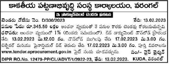 Tender for Office of Kakatiya Urban Development Corporation, Warangal