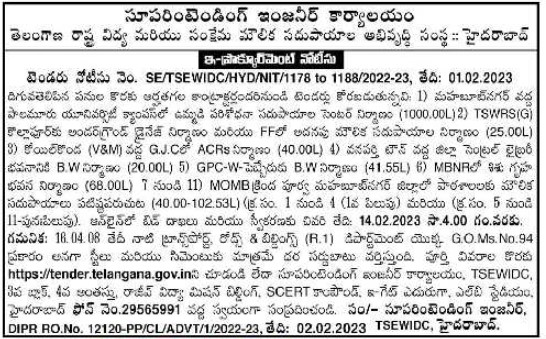 Tender for Office of Superintending Engineer | Telangana State Education and Welfare Infrastructure Development Corporation :: Hyderabad