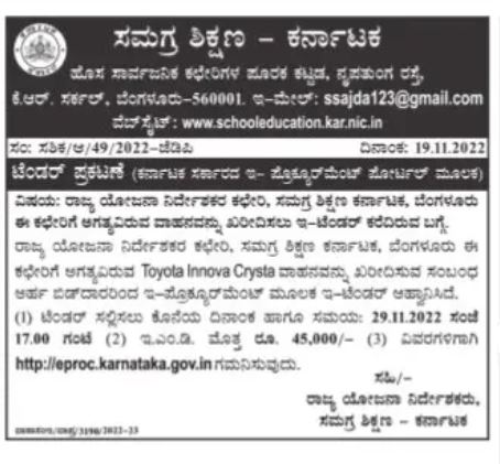 Karnataka, Bangalore regarding the invitation of e-tender for purchase of vehicle