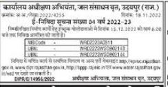 Tender for Office of the Superintending Engineer, Water Resources Circle, Udaipur (Raj.) 202214255 E-Tender Notice No. 04 Year 2022-23 days 1811-2002 moddoll by 15.12.2022 hre 6.00 bjje DIPR/C/149562022