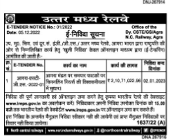 Tender for on behalf of the President of India, invites e-tendering only through online medium for the at level crossing on Agra circle Corrected in 2.01.2023