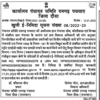 the following works, under Rule 181 of Rajasthan Panchayati Raj Rules 1996, for installation of
