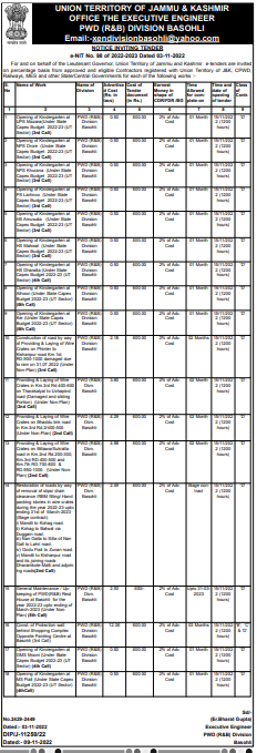Tender for Opening of Kindergarten at GMS Mooni (Under State Capex Budget 2022-23 (UT Sector) (4th Call)