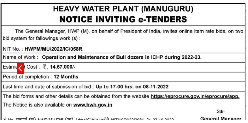 Tender for Operation and Maintenance of Bull dozers in ICHP during 2022-23.