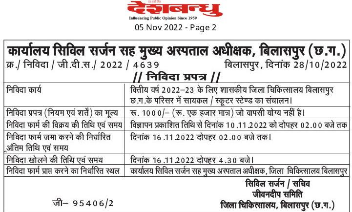 Government District Hospital Bilaspur Chhattisgarh for the financial year 2022-23. Operation of cycle/scooter stand in the premises of