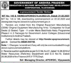 Tender for Original Equipment Manufactures (OEM) Original Equipment Manufacturing firms/ Companies for Dual Desks (3 Seater) Type-V under Mana Badi:Nadu-Nedu Programme Phase-il in 2 Packages for Government Junior Colleges (Educational Institutions) in Andhra Pradesh.
