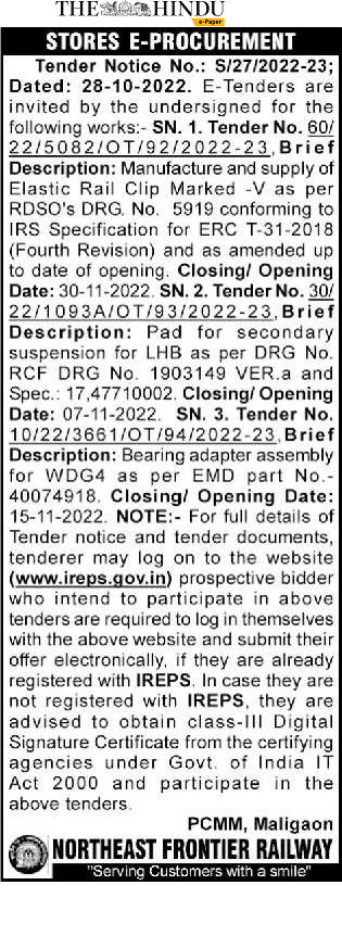 Tender for Pad for secondary suspension for LHB as per DRG No. RCF DRG No. 1903149 VER.