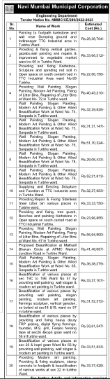 Tender for Painting to footpath stone and Duping ground and Indiranagar TTC Indusa in Turbhe Ward in Navi Mumbai Municipal Corporation of Works
