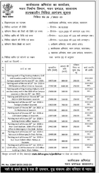 Tender for Painting work of the eve of 26 Jan 2023 in DM Residence officer’s Colony Sasaram