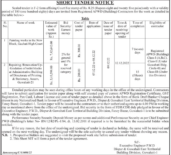 period of 180 (one hundred eighty) days are invited from Registered APWD (Building) Contractors for the work as detailed in