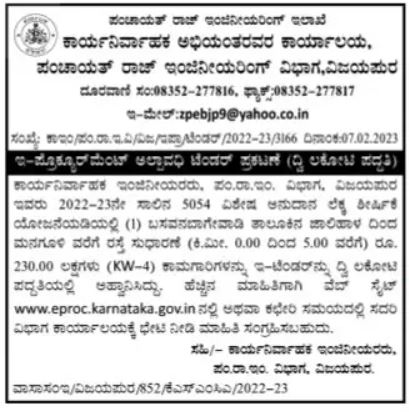 Tender for Panchayat Raj Engineering Department Executive Engineer’s Office(works)