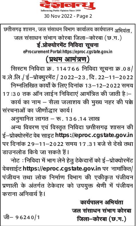 Tender For Pavement of main canal of Saila reservoir Renovation work of structures.