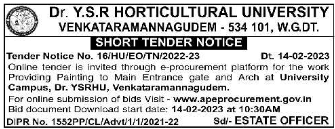 Tender for platform for the work Providing Painting to Main Entrance gate and Arch at University Campus, Dr. YSRHU, Venkataramannagudem.