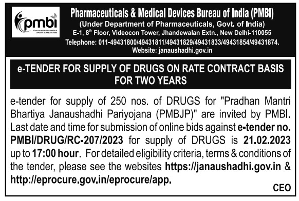 PMBI/DRUG/RC-207/2023 for supply of DRUGS is 21.02.2023