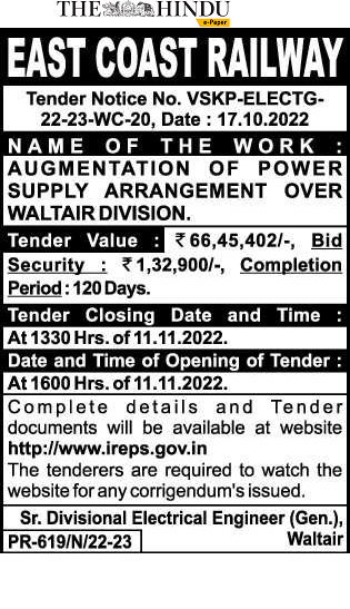 Tender for POWER SUPPLY ARRANGEMENT OVER WALTAIR DIVISION.