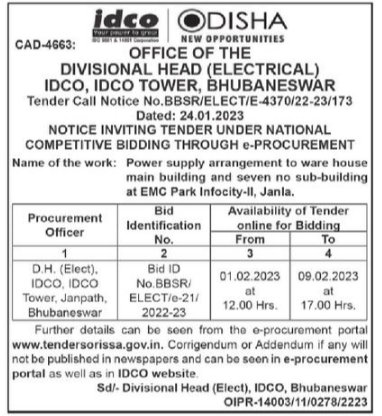 Tender for Power supply arrangement to ware house main building and seven no sub-building at EMC Park Infocity-ll, Janla.