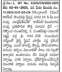 Electrification between Kazipet-Kondapalli Stations (202.15 kms) Proposed New Third Line between Kazipet-Vijayawada -1 Nekkonda-Chinthalapally, 2. Chintalapally-Warangal Sections Pri NINI Arrangement of lighting arrangements at Railway Station Yards with Gumi, air coolers, fans, shamianas and chairs etc. along with temporary uninterrupted power supply arrangements with DG nets, arrangement of accommodation, arrangement of breakfast/lunch/dinner etc. and additional electrical arrangements.