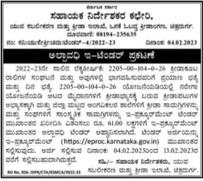 Tender for practice of sportsmen coming to the playgrounds for sports practice and to buy and distribute sports materials to the district level schools of the disabled and cultural materials to the associations through e-procurement
