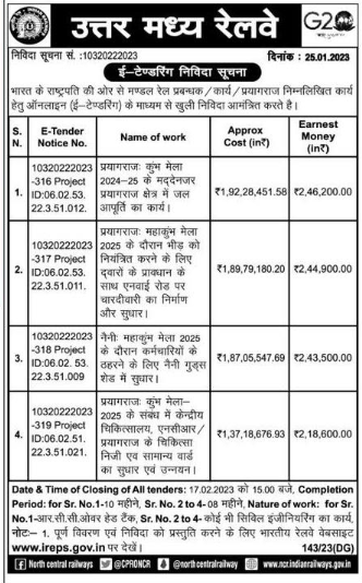 Tender for Prayagraj: Improvement and upgradation of medical private and general wards of Central Hospital, NCR / Prayagraj in relation to Kumbh Mela-2025.