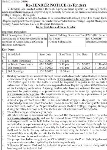 Tender for premises of Assam Medie College Hospital, Dibrugarh The E-Tender is Two-Bid System, to be submitted with affixed Court