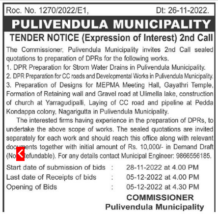 Formation of Retaining wall and Gravel road at Ulimella lake, construction of church at Yarragudipalli, Laying of CC road and pipeline at Pedda Kondappa colony, Nagarigutta in Pulivendula Municipality.