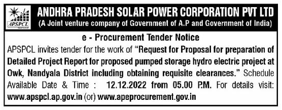 “Request for Proposal for preparation of Detailed Project Report for proposed pumped storage hydro electric project at Owk, Nandyala District including obtaining requisite clearances.”