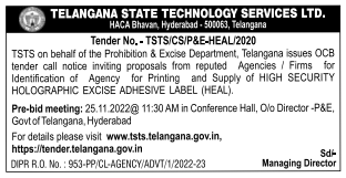 Tender for Printing and Supply of HIGH SECURITY HOLOGRAPHIC EXCISE ADHESIVE LABEL (HEAL).