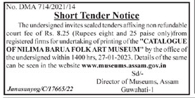 Tender for printing of the CATALOGUE OF NILIMA BARUA FOLK ART MUSEUM
