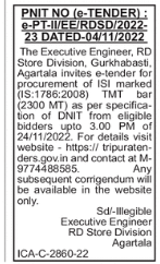 Tender for procurement of ISI marked (IS:1786:2008) TMT bar (2300 MT)