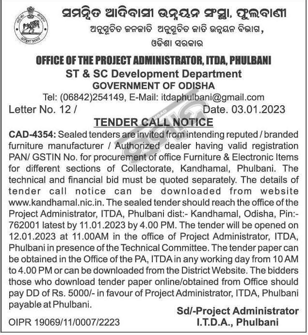 for different sections of Collectorate, Kandhamal, Phulbani.