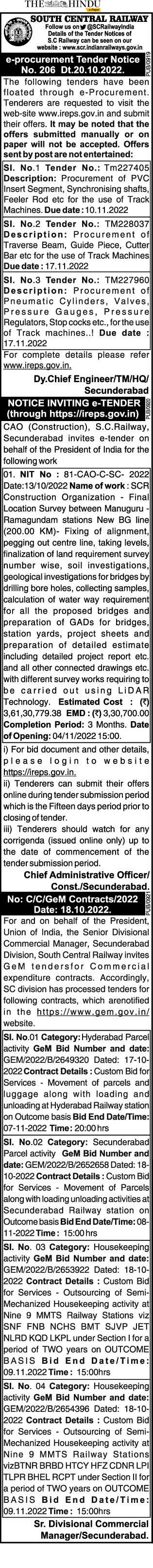 Tender for Procurement of Traverse Beam, Guide Piece, Cutter Bar etc for the use of Track Machines Due date: 17.11.2022