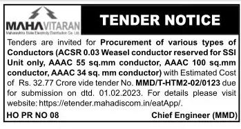 Tender for Procurement of various types of Conductors (ACSR 0.03 Weasel conductor reserved for SSI Unit only