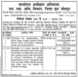 Tender for Proposal For Augmentation Of Rural Water Supply Scheme Khari Khurd Tehsil Luni District Jodhpur Under Jal Jeevan Mission