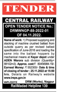 Tender for Proposed supplying and stacking of machine crushed ballast from outside quarry
