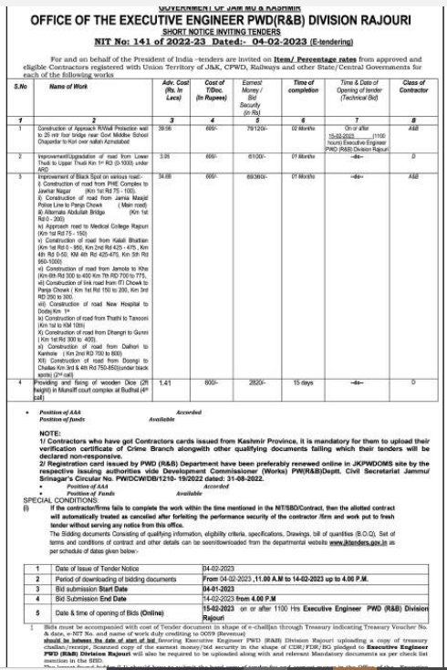 Tender for Providing and fooing of wooden Dice (2 height) in Munsif court complex at Budhal
