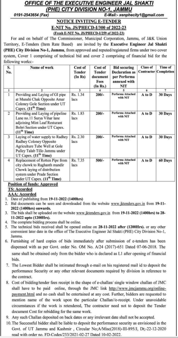 Tender for Providing and Laying of Gl pipe at Munshi Chak Opposite Amar Coloney Gole Section under UT A to D